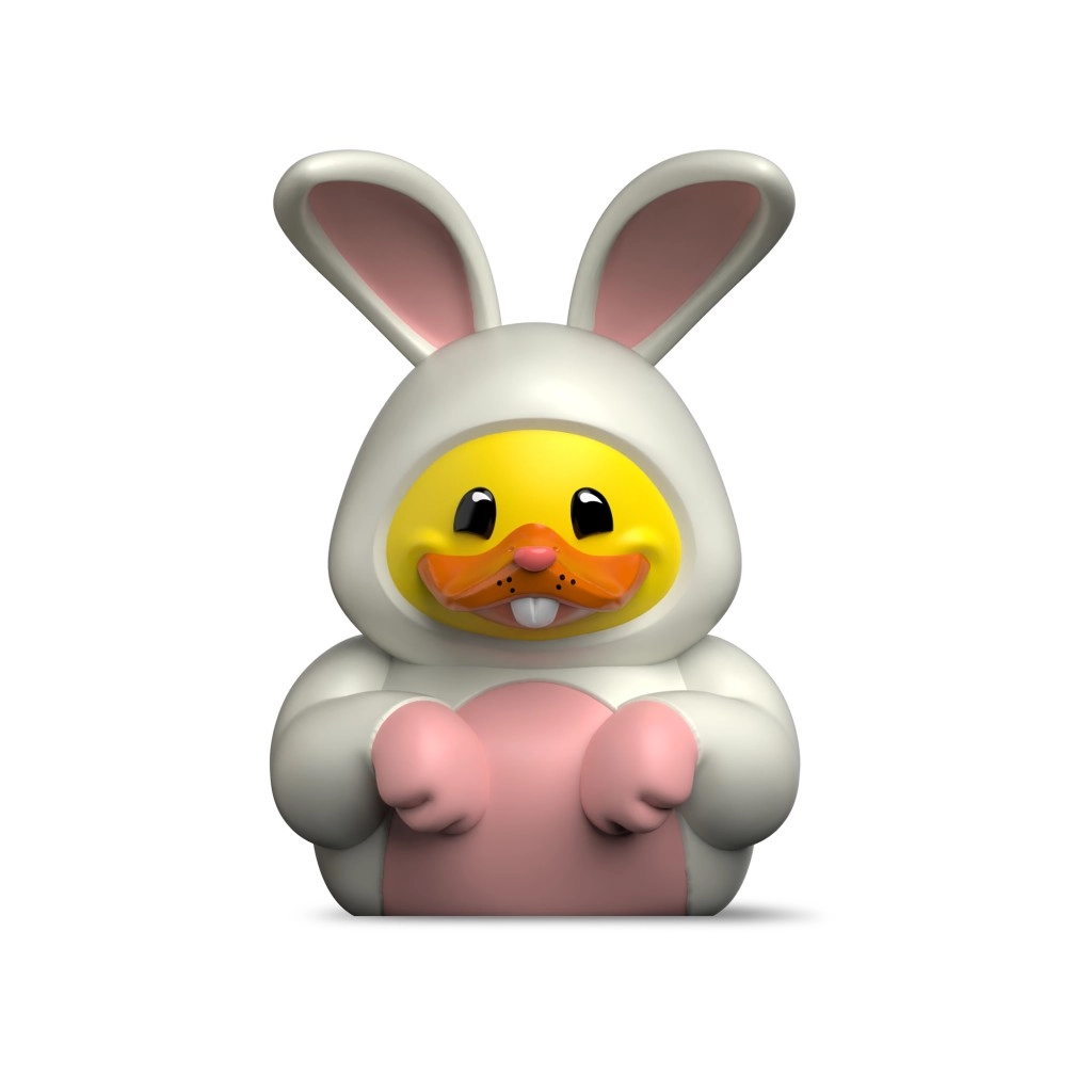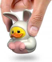 De combinatie van een eendje en een konijnenpak zorgt voor een uniek decoratiestuk dat zowel kinderen als volwassen verzamelaars zal bekoren.