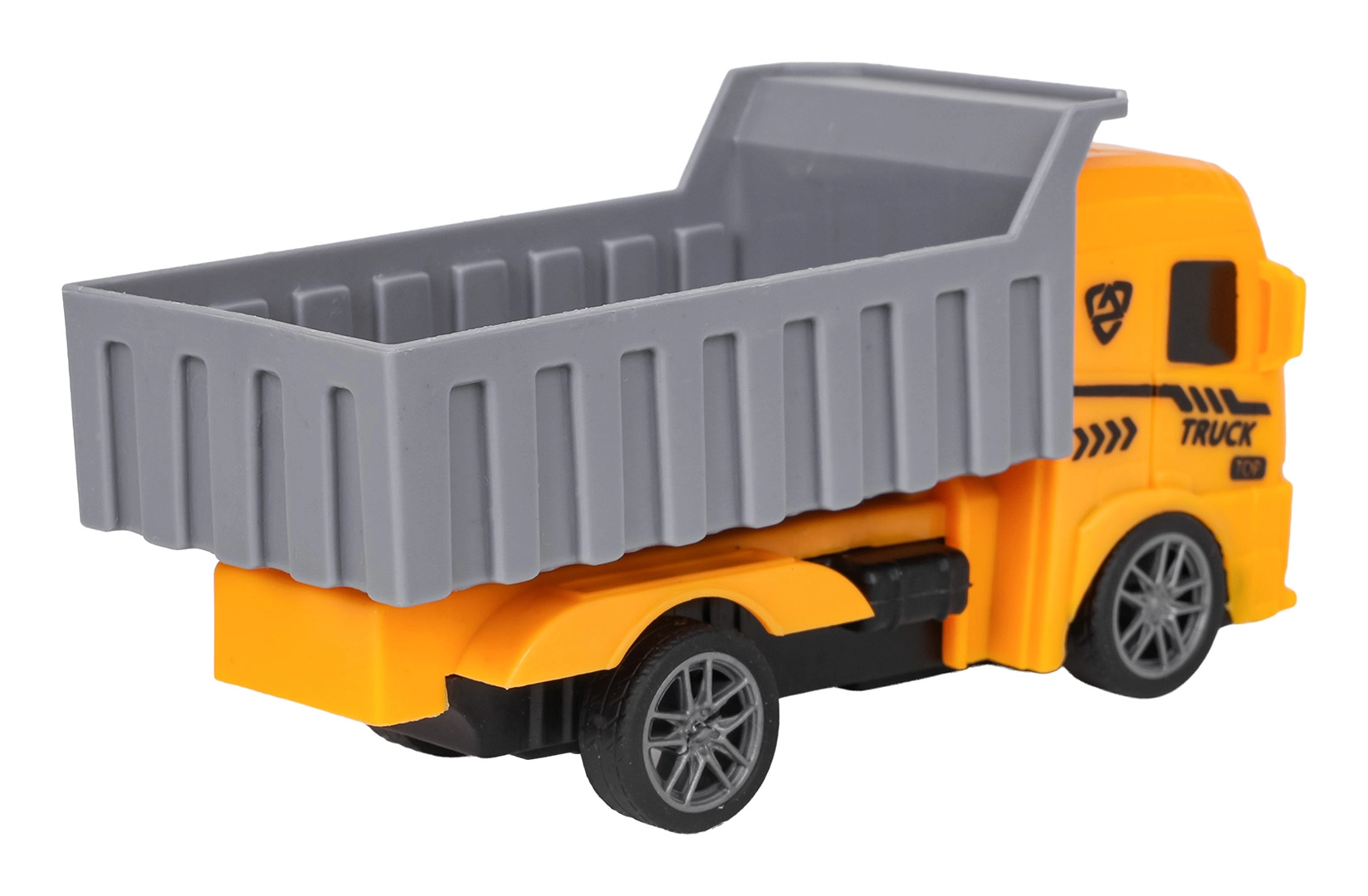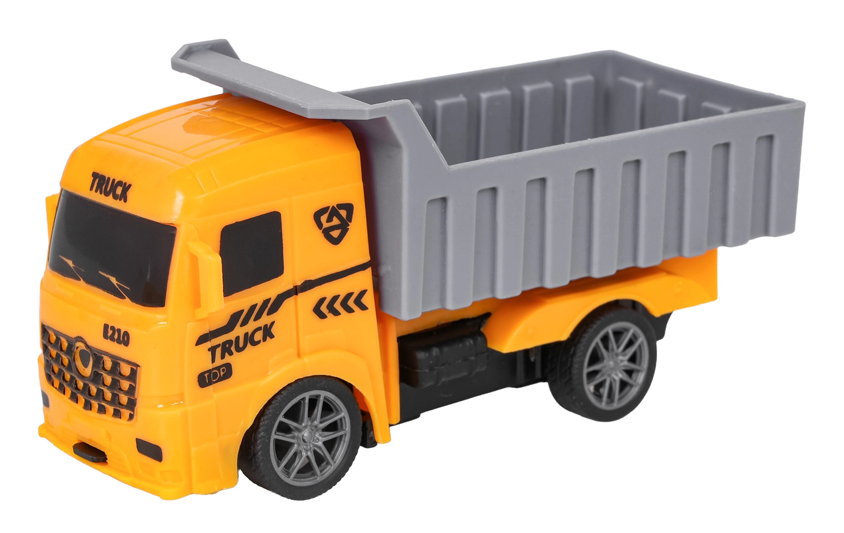 De kipper heeft een kantelbare laadbak voor eenvoudig “lossen van de lading”. Alle voertuigen rollen licht over de vloer voor vloeiend spel.