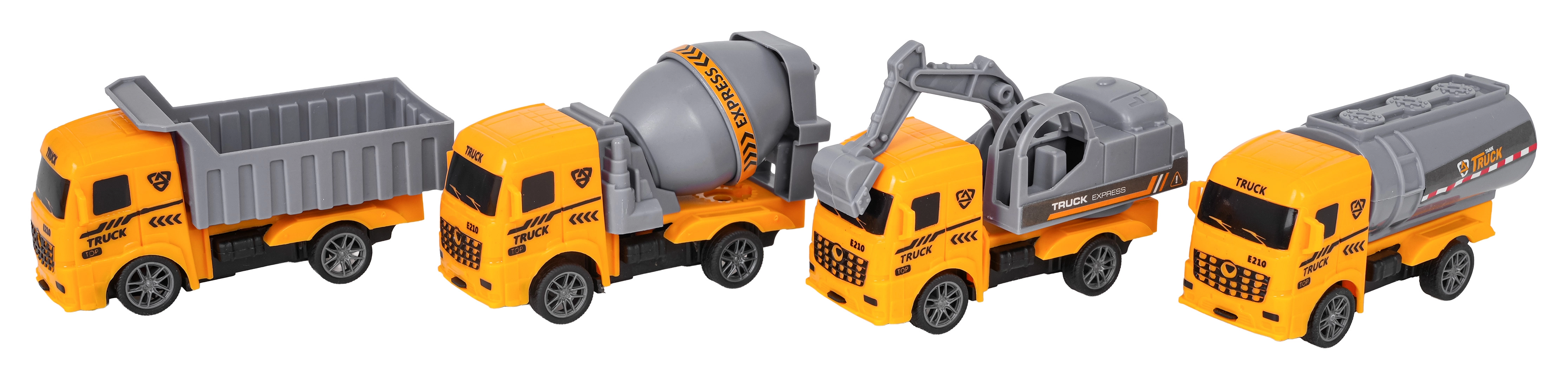 Ontdek de compacte bouwvloot: een betonmixer, kipper, graafmachine en tankwagen. Elk model is ontworpen met oog voor detail en duurzaamheid, zodat het dagelijks spelen doorstaat. Dankzij de bewegende onderdelen bootsen kinderen gemakkelijk echte bouwactiviteiten na en ontwikkelen ze zowel fijne motoriek als verbeeldingskracht.