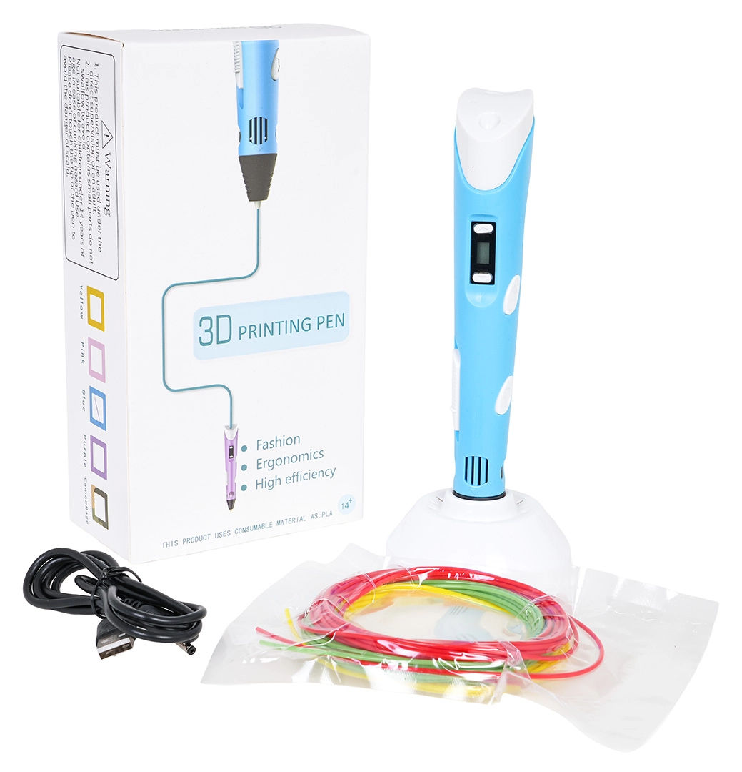 - 3D-pen, set PLA-vullingen, USB-kabel, handleiding
