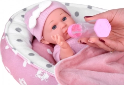 Deze babypop is ontworpen voor tedere verzorgingsspelletjes. Dankzij het realistische gezichtje, de zachte roze outfit en de bewegende armpjes en beentjes beleven kinderen uren creatieve pret. Het zachte textielen nestje met kussentje en dekentje biedt een comfortabele slaapplek.