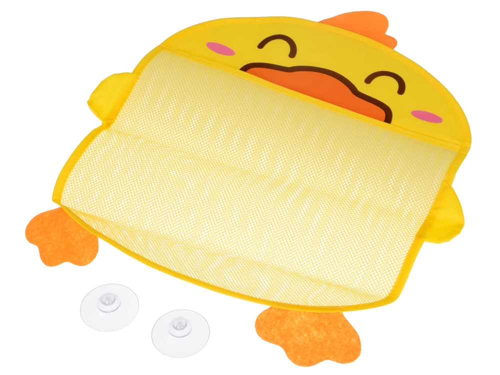Schattige badkamerorganizer in de vorm van een gele eend helpt orde te houden in bad en douche. De ruime voorste netzak biedt plaats aan badspeelgoed en kleine accessoires, droogt ze snel en voorkomt schimmelvorming. Dankzij 2 zuignappen bevestig je hem eenvoudig op gladde tegels of glas. Een geweldige aanvulling voor badkamer en kinderkamer.
