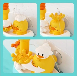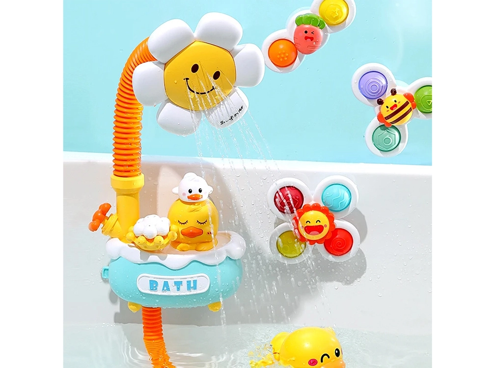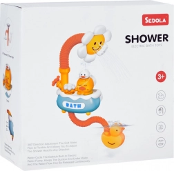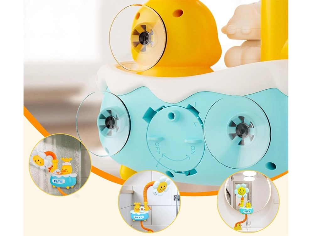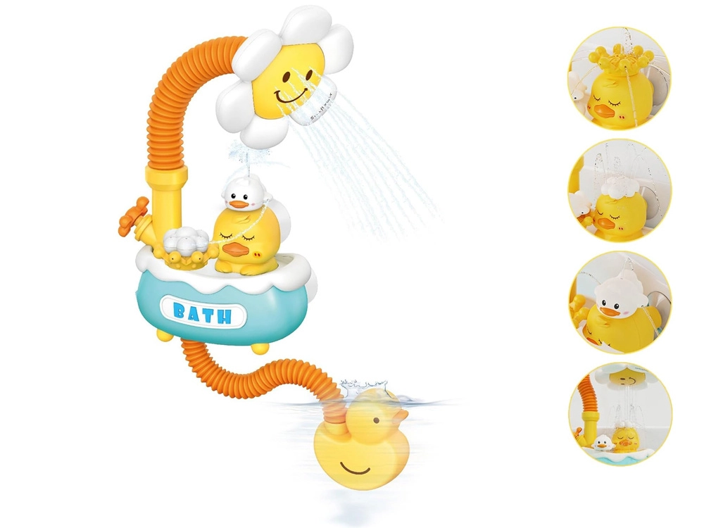 De vrolijke bloemendoucheset voor kinderen bevordert een positieve relatie met water en maakt elk badmoment leuker. Dompel het pompje in de vorm van een eendje onder in het water, zet het aan en zie hoe er uit de lachende bloem een zachte waterstraal tevoorschijn komt. Het speelgoed is ideaal voor kinderen vanaf ca. 3 jaar en is dankzij de veilige waterstraal en de eenvoudige montage een prima keuze voor elke badkamer.