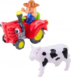 De interactieve boerentractor met aanhanger en een boerfiguurtje zal elke kleine liefhebber van het platteland verrukken. De speelgoedtractor rijdt vooruit en achteruit, heeft lichteffecten, speelt melodieën en geluiden af en het boerfiguurtje beweegt tijdens het rijden. Ook inbegrepen is een aanhanger met een koetje, die creatieve boerderijspeelpret stimuleert.