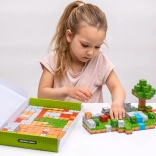 Ondersteun de natuurlijke ontwikkeling van het kind door middel van spel: de set ontwikkelt ruimtelijk inzicht, oog-handcoördinatie, geduld en samenwerking. De natuurlijke motieven inspireren tot het creëren van eigen werelden en verhalen.