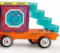 Met de meegeleverde platforms met wielen en decoratieve elementen ontstaan realistische modellen. Stickers met letters, voorwerpen en dieren ondersteunen lerend spelen en vergroten de woordenschat. Ideaal voor kinderen vanaf 3 jaar en voor activiteiten thuis of op de opvang in de geest van STEAM.