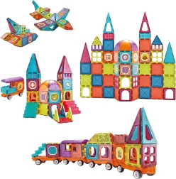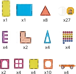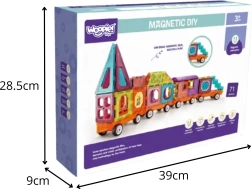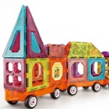 Ontdek de creatieve wereld van magnetisch bouwen. Gekleurde elementen met verschillende vormen en prints klikken snel en veilig vast, zodat kinderen direct locomotieven, wagons en originele voertuigen kunnen bouwen. De set motiveert tot creatief spel en ontwikkelt constructief denken.