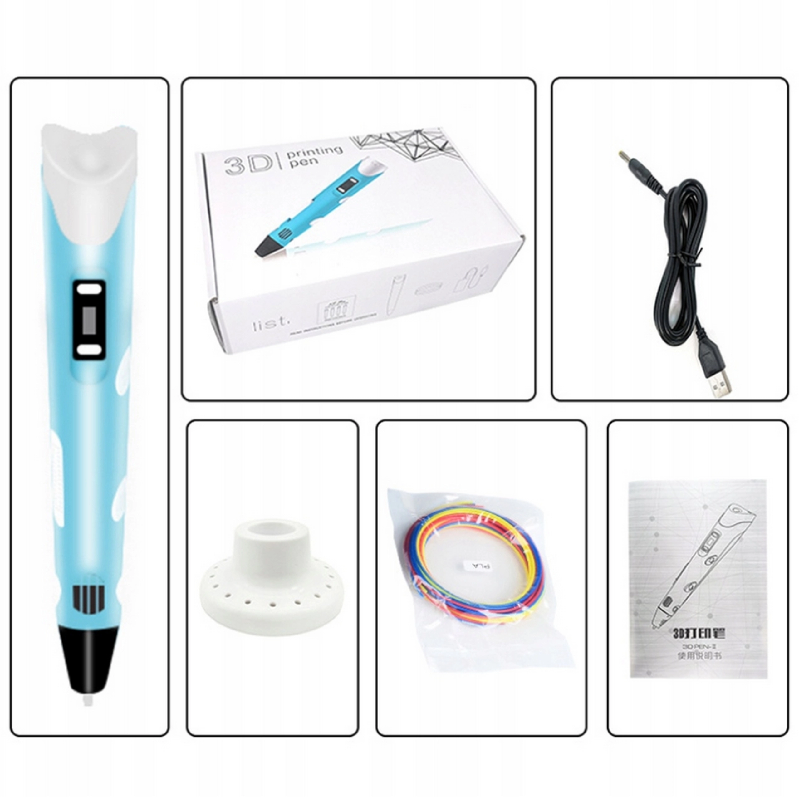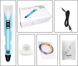 - 3D-pen (1 st.), PLA-filament 12 × 3 m (verschillende kleuren), USB-kabel (1 st.), handleiding (EN)