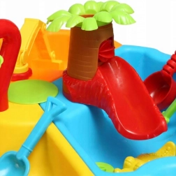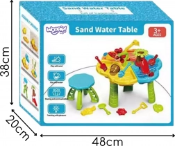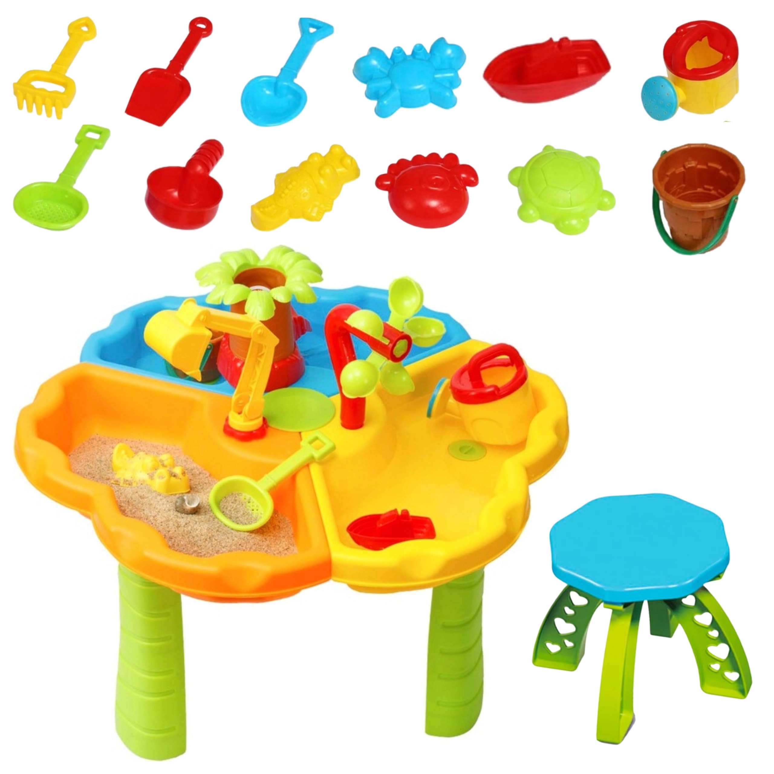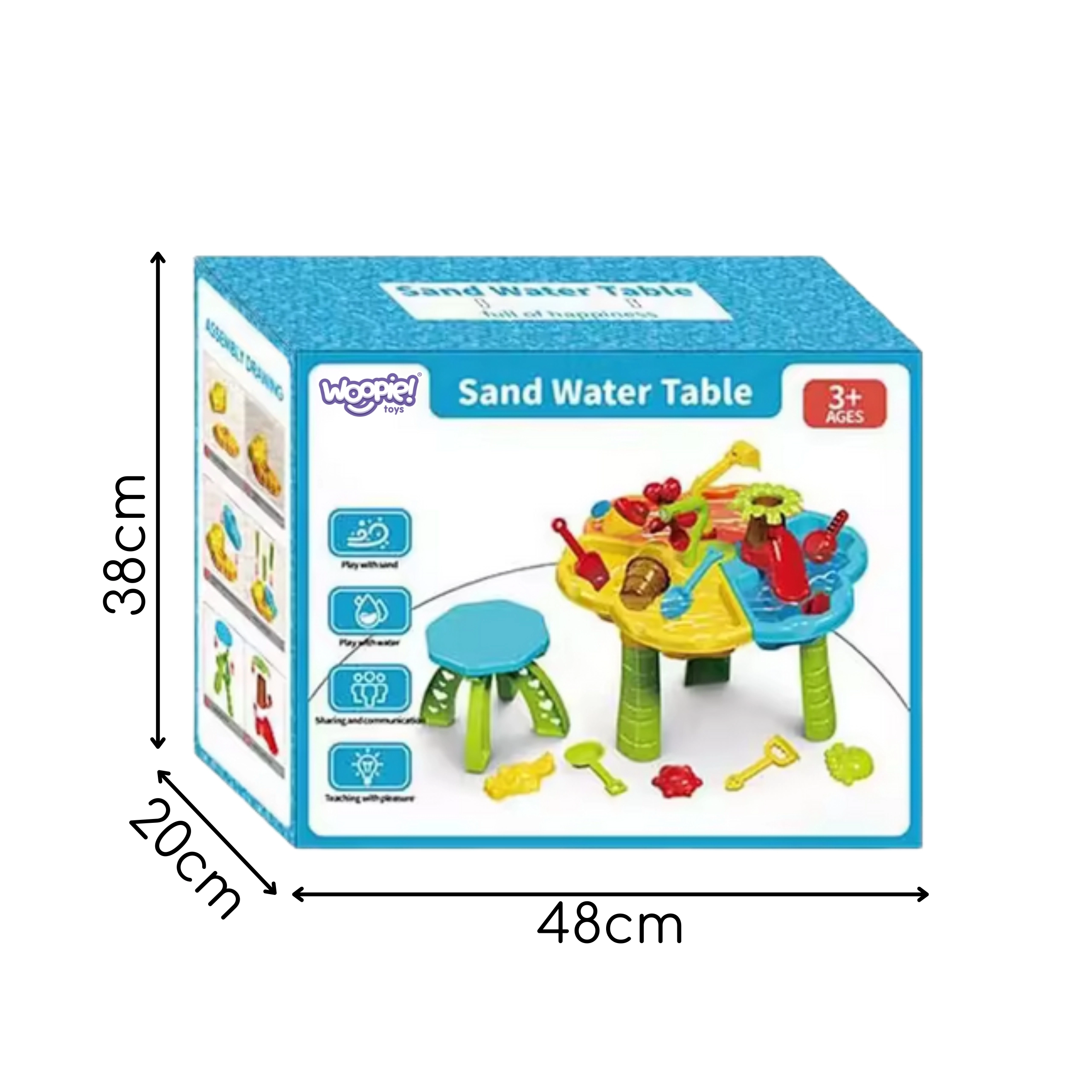 De 2-in-1 speeltafel voor water en zand is ideaal voor in de tuin, op het balkon, terras en in de kinderkamer. De drie bakjes maken gelijktijdige experimenten met water, zand en accessoires mogelijk, zodat kinderen kunnen bouwen, gieten, zeven en verschillende texturen ontdekken. De ergonomische stoel zorgt voor comfort en stabiliteit tijdens het spelen.