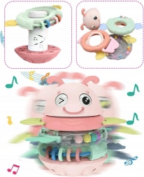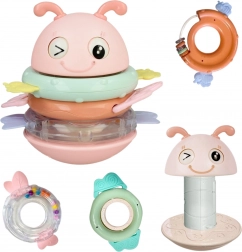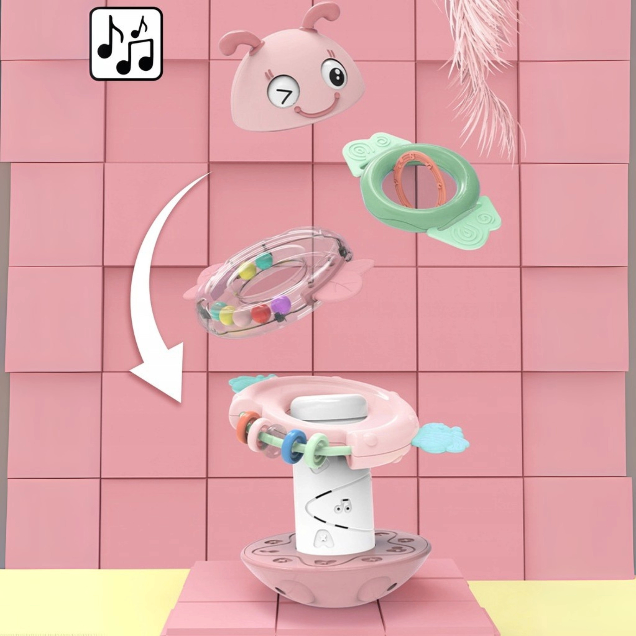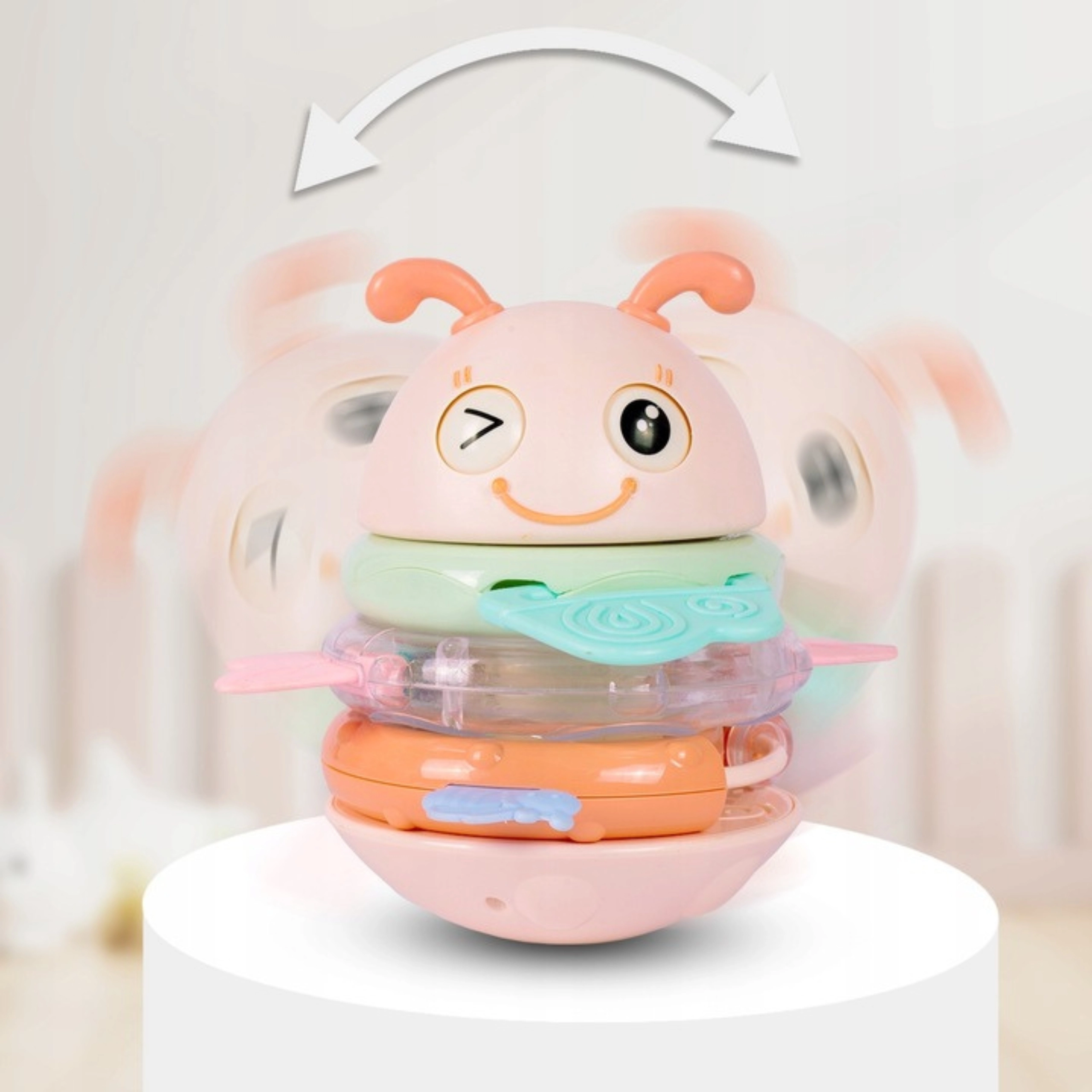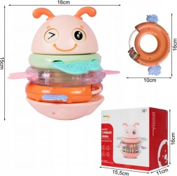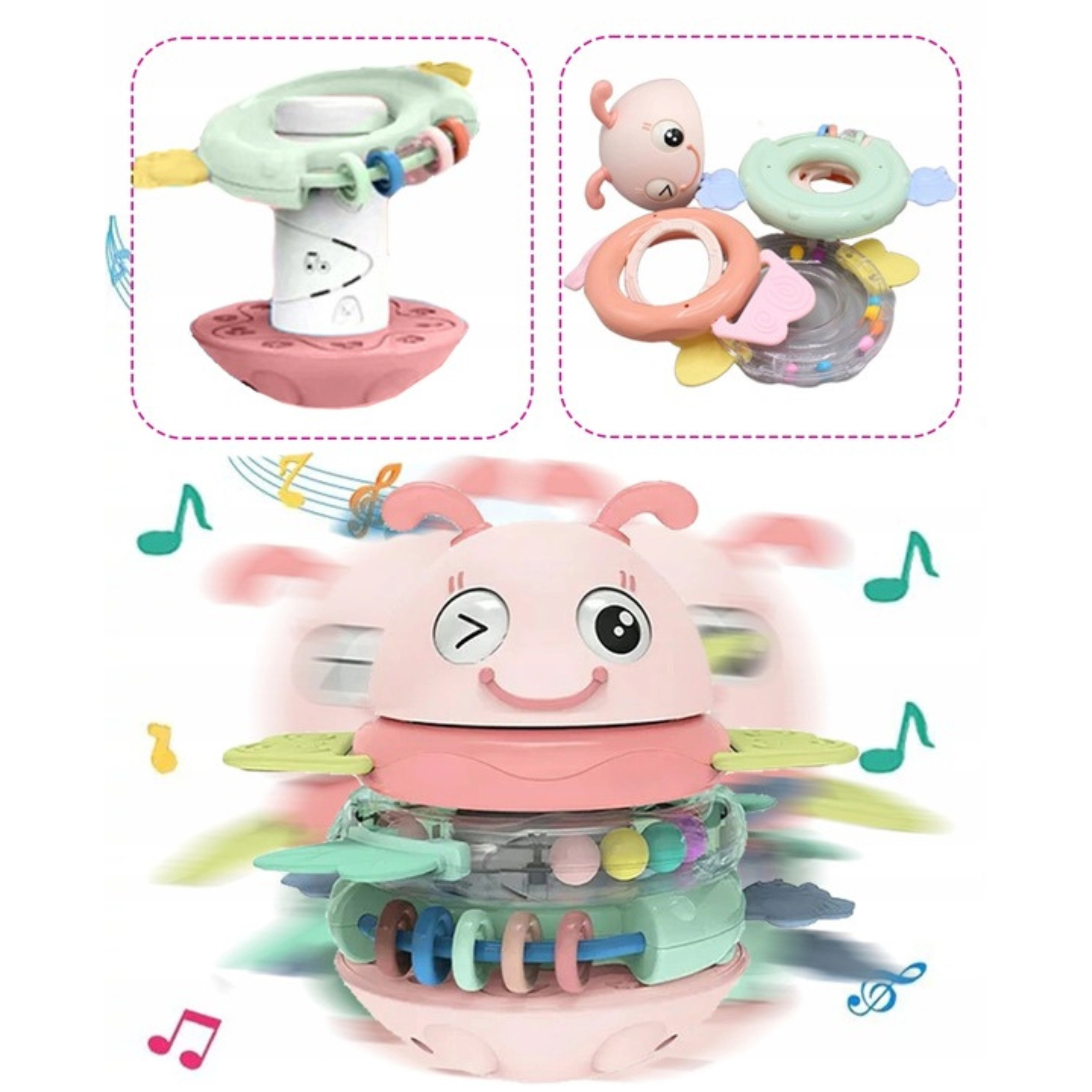 Zoek je een babyspeeltje dat boeit, het tandvlees verzacht en tegelijk de ontwikkeling stimuleert? Deze roze bij van WOOPIE is een multifunctioneel zintuiglijk speelgoed geschikt vanaf de eerste maanden. De ringen kunnen afzonderlijk worden gebruikt als bijtringen en rammelaars, of op de pin worden geplaatst – het speeltje speelt dan een liedje af of maakt een grappig geluid. De stabiele, afgeronde basis wiebelt zachtjes en motiveert het kind om telkens opnieuw te ontdekken.