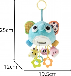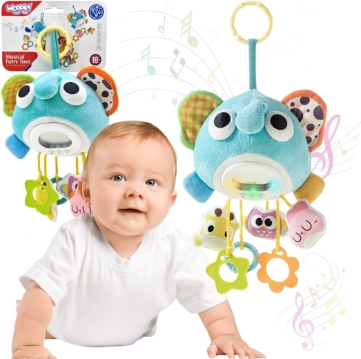 - pluchen olifant met muziek- en lichtfunctie, 4 hangende speeltjes