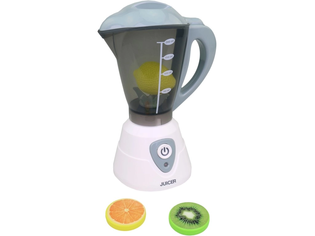 Een leuke en veilige kinderbatterijmixer met fruitvormige accessoires die elke kleine chef-kok zal verrukken. Na het plaatsen van batterijen maakt hij een realistisch mixgeluid, waardoor spelen nog leuker wordt. Een ideale toevoeging aan de kinderkeuken die de fantasie prikkelt, de motoriek ontwikkelt en kinderen leert over het bereiden van vitaminerijke drankjes.