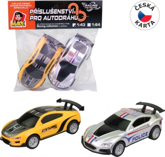 Vul je racebaan aan met 2 reserveautootjes in schaal 1:43, geschikt voor de Racing Collection-serie. In de verpakking vind je twee verschillend gekleurde modellen van duurzaam plastic, ideaal voor kinderen vanaf 3 jaar en voor jongens die van racen houden.