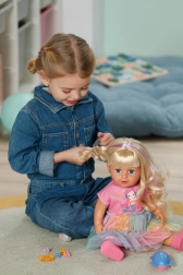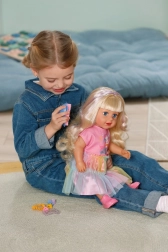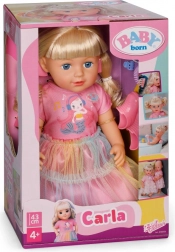 De pop BABY born Carla is de ideale vriendin voor creatief spel en haarexperimenten. De lange nylon haren zijn gemakkelijk te kammen en te stylen, en met de meegeleverde borstel, elastiekjes en speldjes maak je talloze kapsels. De realistische look, beweeglijke ledematen en de mogelijkheid om zelfstandig te staan stimuleren fantasie en rollenspel.