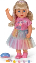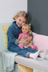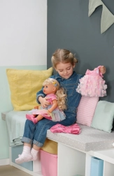 Ontdek de pop BABY born Carla met een lengte van 43 cm, lange kwalitatieve haren en een set van 7 kappersaccessoires. Ze biedt uitstekende beweeglijkheid, kan zelfstandig staan, draagt een stijlvolle outfit en dankzij haar stevige lichaam kan ze ook in bad.