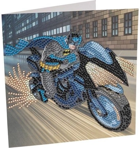 Maak een originele cadeaubereidkaart met het motief van BATMAN met behulp van sprankelende steentjes. De set bevat een voorgedrukt sjabloon, compleet accessoirespakket voor het plakken van de steentjes en een envelop. Eenvoudig creatief knutselen voor kinderen en volwassenen, ideaal als persoonlijke groet of cadeau.
