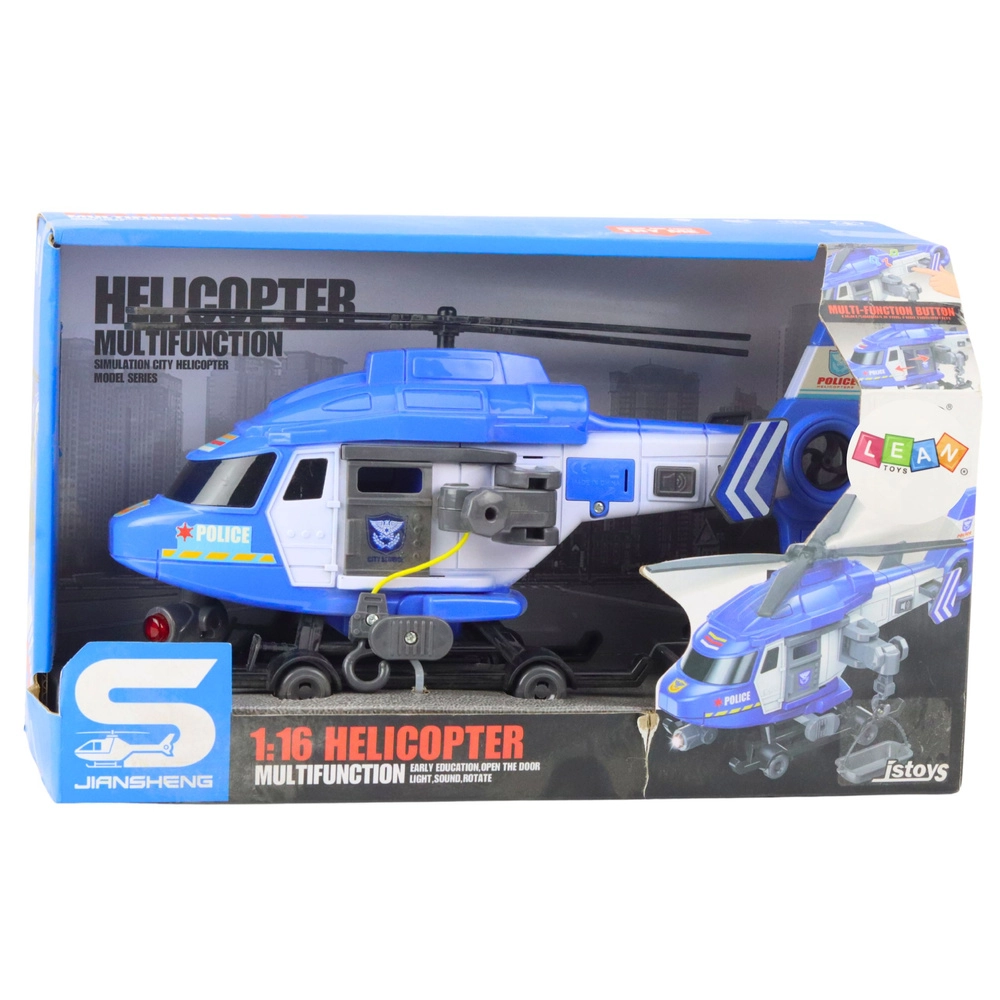 Realistische politiehelikopter op schaal 1:16 die alle jonge fans van luchtvaart en reddingsacties zal verrassen. Gemaakt van duurzame kunststof, met licht- en geluidseffecten, draaiende rotors en wieltjes om over de vloer te rijden. Dankzij de haken met brancard kunnen spannende reddingsmissies worden nagespeeld.
