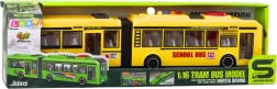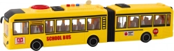 Realistische gelede schoolbus op schaal 1:16 voor kleine fans van stadsvervoer. Biedt licht- en geluidseffecten, openslaande deuren en sturen van de wielen via een draaiknop op het dak. Het gedetailleerde ontwerp, de gele schooluitvoering en de duurzame materialen zorgen voor leuk en leerzaam spel vol verbeelding.