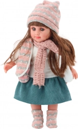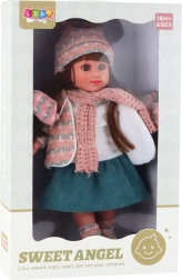 De schattige pop SWEET ANGEL met een hoogte van 36 cm maakt elk kind blij dat houdt van vadertje‑en‑moedertje spelen en verzorgen. Ze heeft lang bruin haar, fijne gelaatstrekken en realistische ogen. Ze is gekleed in een winterset – muts, sjaal en truitje, aangevuld met een rok, blouse en sokken. Geweldig voor het stimuleren van de fantasie en rollenspellen.