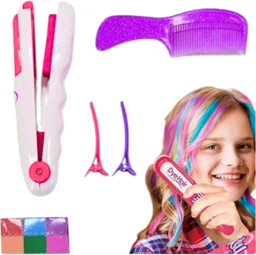 Creëer in een handomdraai unieke kapsels! De kinderset voor haarkleuring bevat een eenvoudige stijltang voor het aanbrengen van kleuren, gekleurde krijtjes, een kam en haarklemmetjes. Eenvoudig in gebruik, veilige materialen en gemakkelijk uitwasbare kleuren zorgen elke dag voor plezier – ideaal voor creatief spel en themafeestjes.