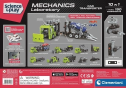 Het mechanische laboratorium Clementoni Science & Play biedt kinderen vanaf 8 jaar een slim ontworpen bouwset die creatief spel combineert met de eerste stappen in de wereld van mechanica. Met meer dan 190 nauwkeurig vervaardigde onderdelen bouw je tot 10 verschillende modellen – van een trekker met autotransporter tot andere technische varianten. Functionele componenten, zoals een kantelbare oprijplaat, beweegbare besturing en verstelbare achterdelen, geven het bouwen en spelen een realistische dimensie.