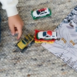 Er zijn 8 metalen autootjes van 7,5 cm inbegrepen, waarvan 5 exclusieve modellen die je niet zomaar ergens anders vindt. In totaal zijn er 16 accessoires, zodat kinderen gemakkelijk hun eigen scenario’s maken – van stadsstraten tot racebanen.