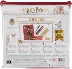Stijlvolle schoolset met HARRY POTTER-motief in een transparant plastic etui, bevat alles wat een (kleuter)schoolkind nodig heeft: etui, liniaal, potlood, 4 kleurpotloden, gum, puntenslijper, pen en notitieblok. Ideaal om te schrijven, tekenen en aantekeningen te maken, zowel op school als onderweg.