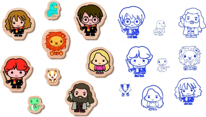 - 9 gevormde houten stempels met populaire HARRY POTTER-motieven voor eindeloos knutselplezier.