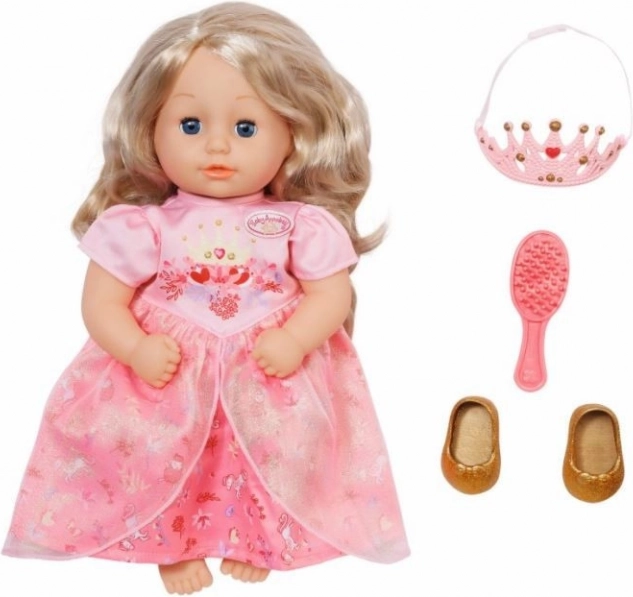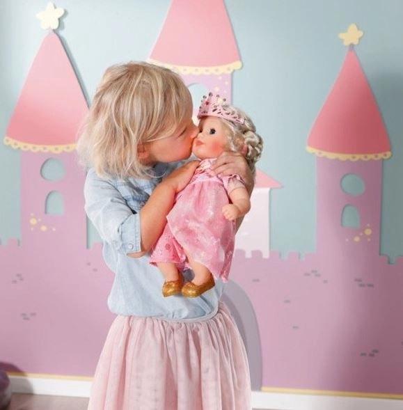 Onder de roze jurk met tule ruche schitteren gouden ballerina's, die haar koninklijke uitstraling compleet maken. Dankzij het eenvoudig toegankelijke "easy fit” snit van de jurk is verkleden gemakkelijk, zelfs voor kleine kinderhandjes. De pop bevordert creativiteit en verantwoordelijkheid bij kinderen vanaf één jaar.
