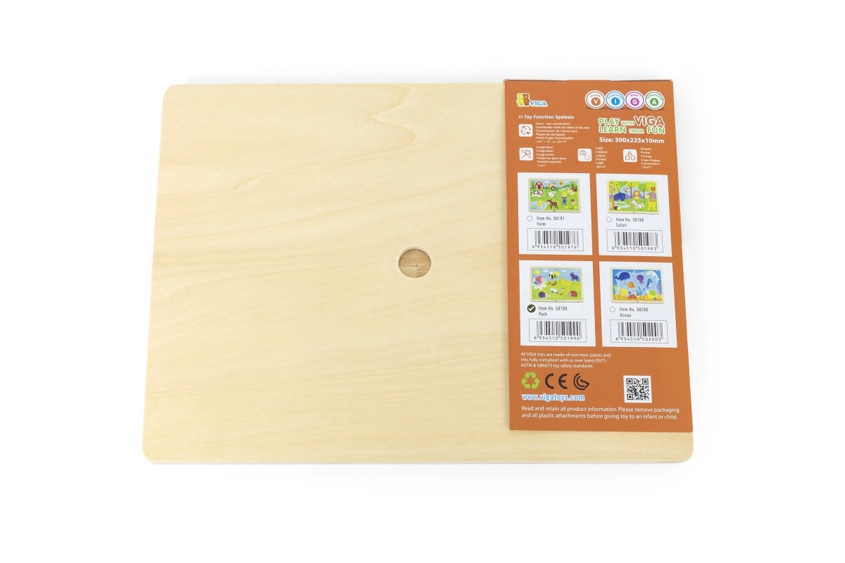 De houten constructie en glad afgewerkte randen zorgen voor een lange levensduur en veilig spel. Ideaal als eerste “grotere” puzzel voor kleine puzzelaars – thuis en op de peuterspeelzaal of kleuterschool.