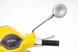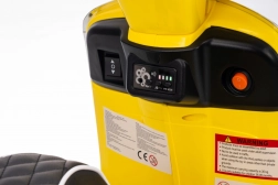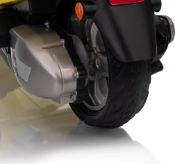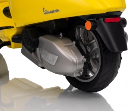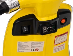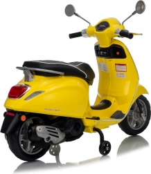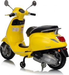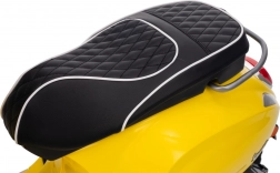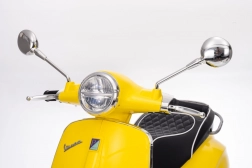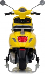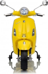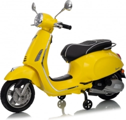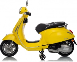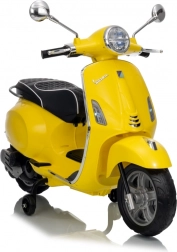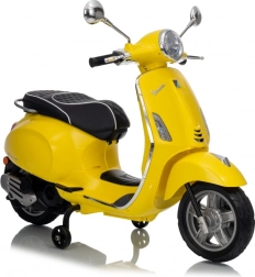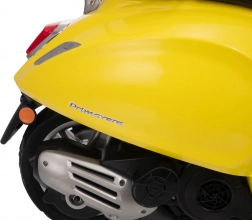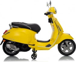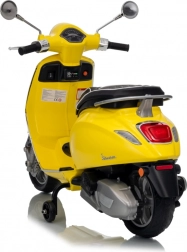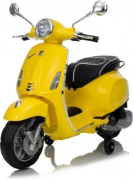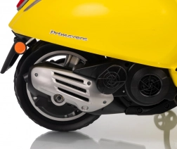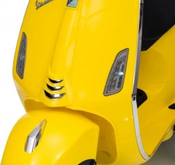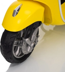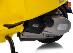 Stijlvolle elektrische kinderscooter VESPA ROMA in een opvallende gele kleur biedt kinderen veilige fun en hun eerste rijervaringen. Dankzij twee motoren van 2×35 W, een 12 V 7 Ah accu, zachte EVA-wielen en een soepele start is de rit comfortabel en stabiel. Voor- en achter LED-verlichting, een audiopaneel met MP3/Bluetooth/AUX, een laadniveau-indicator en een comfortabel zadel van eco-leer ontbreken niet. Een uitstekende keuze voor jonge rijders.