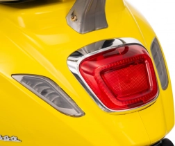 Het geïntegreerde audiopaneel met MP3, Bluetooth en AUX speelt favoriete liedjes af; op het stuur zitten knoppen voor geluiden en de claxon. Heldere LED-lampen voor en achter verhogen de zichtbaarheid en versterken de authentieke look van een echte VESPA.