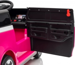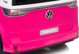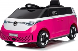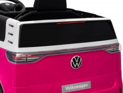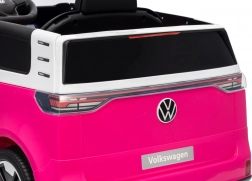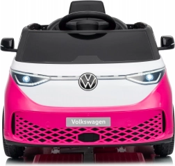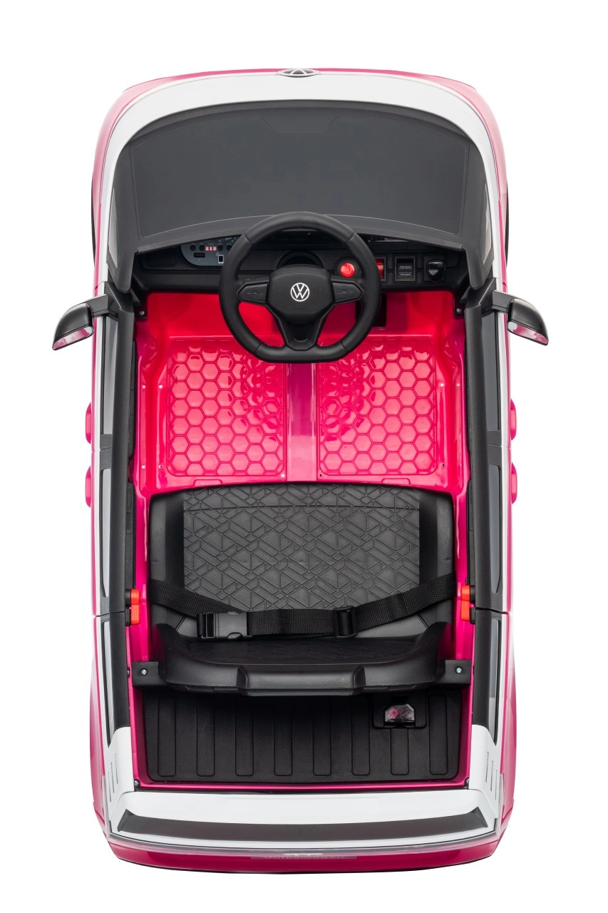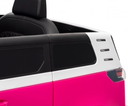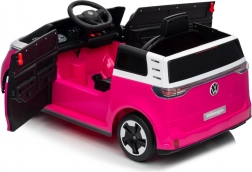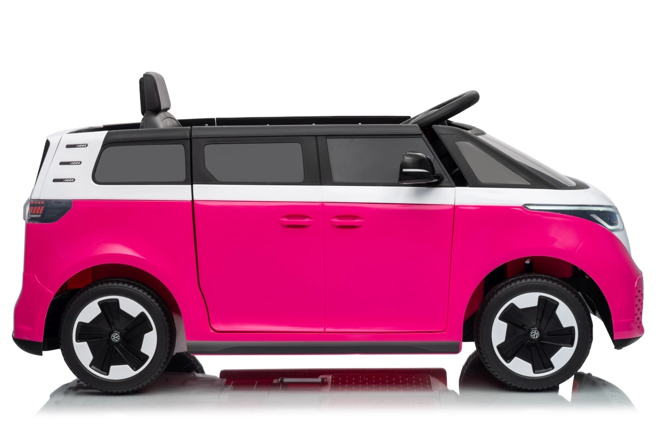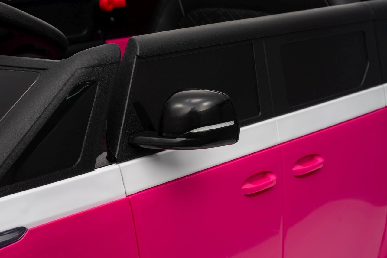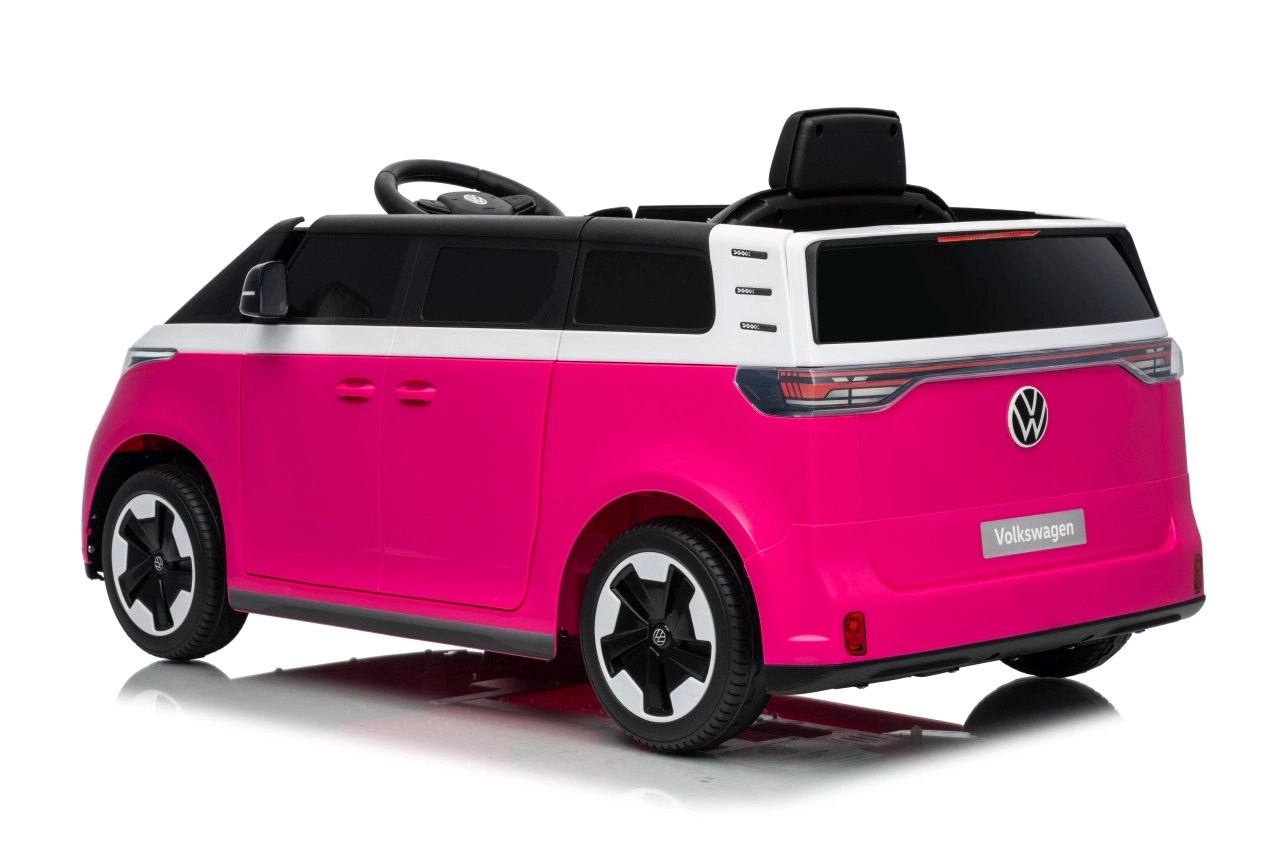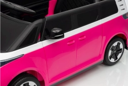 Stijlvolle elektrische kinderauto VOLKSWAGEN ID. BUZZ in roze, met realistische details, openslaande deuren, een comfortabel zitje van eco-leer met veiligheidsgordel en zachte EVA-wielen. Twee motoren 2×45 W en een 12 V 10 Ah accu zorgen voor soepel rijden. Verder met LED-verlichting, bluetooth, USB/MP3 en 2,4 GHz afstandsbediening met STOP-functie voor maximale ouderlijke controle.