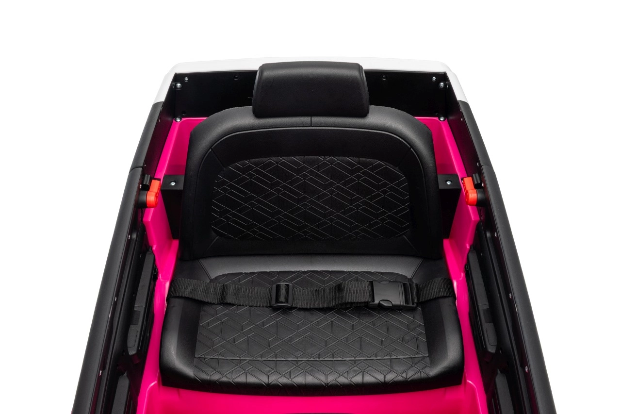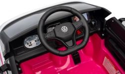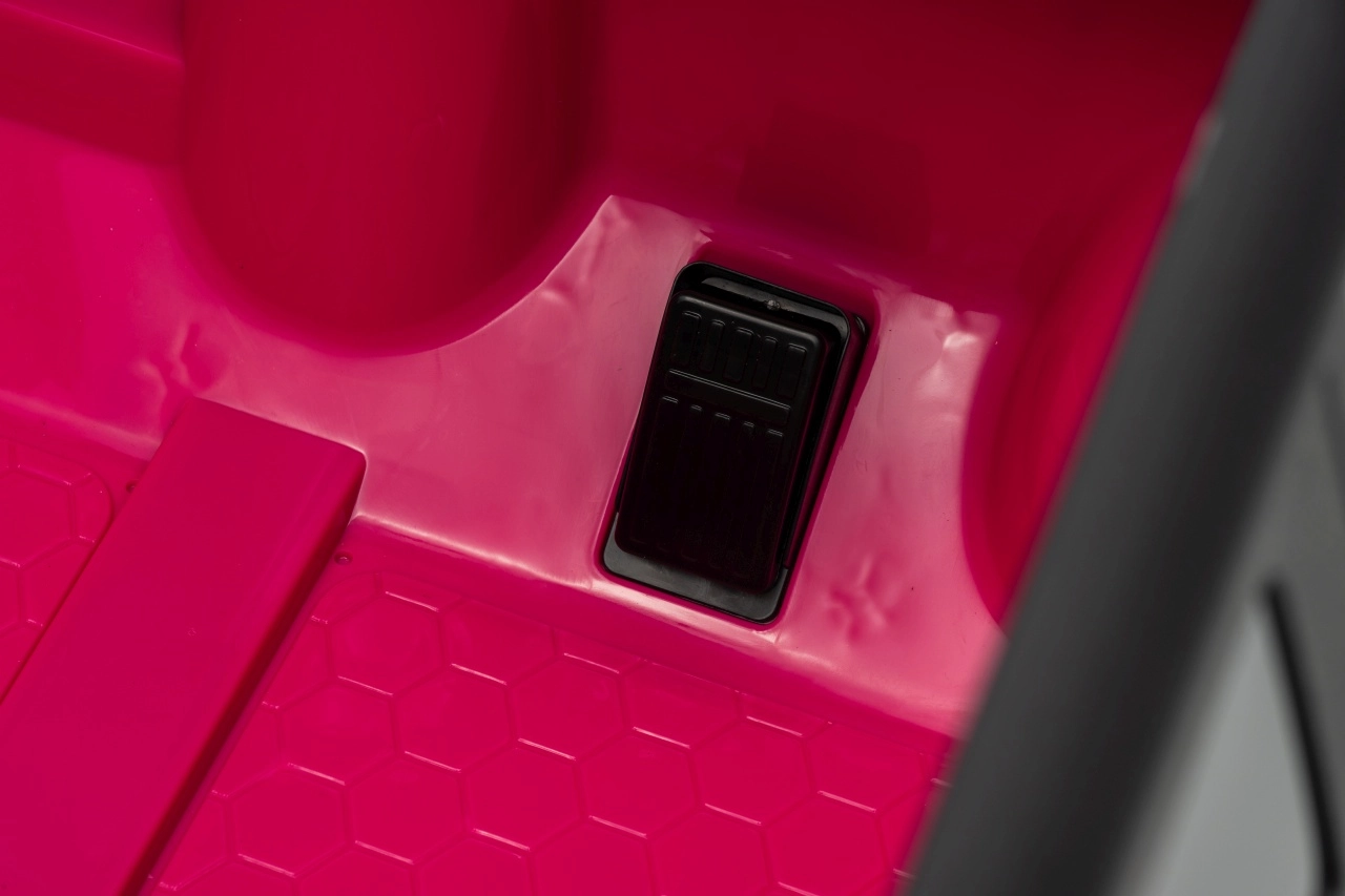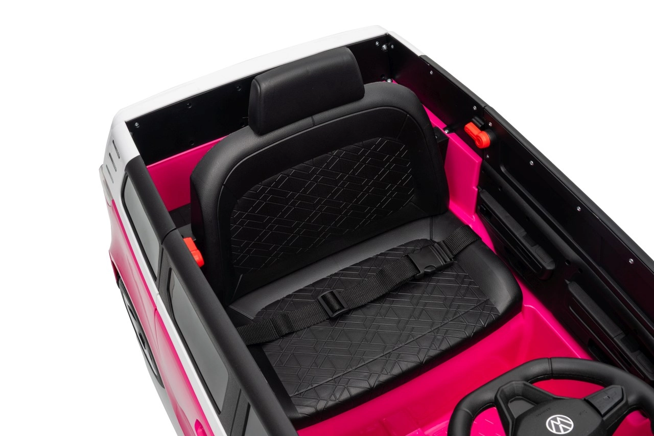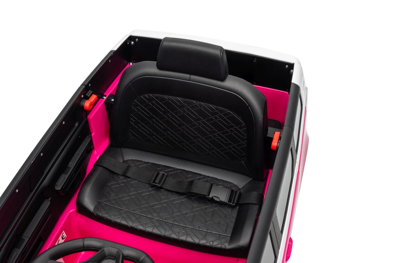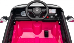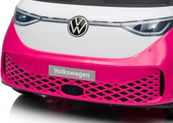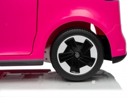 De roze VOLKSWAGEN ID. BUZZ is een moderne elektrische kinderauto met rijke uitrusting en focus op veiligheid. Dankzij de soepele start, keuze uit 2 snelheden voor-/achteruit en voor- en achtervering rijdt hij comfortabel op trottoir en in de tuin. Zachte EVA-wielen rijden stil en slippen niet.