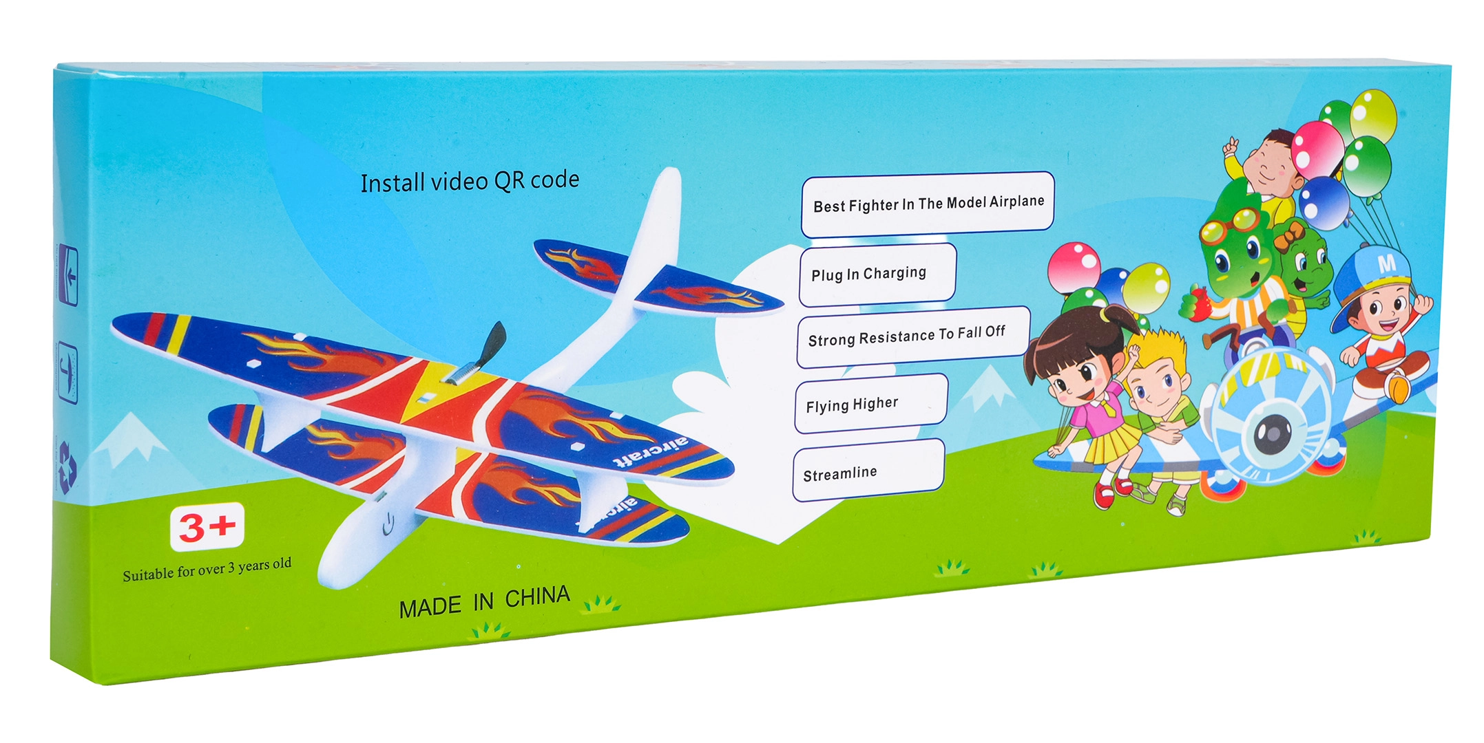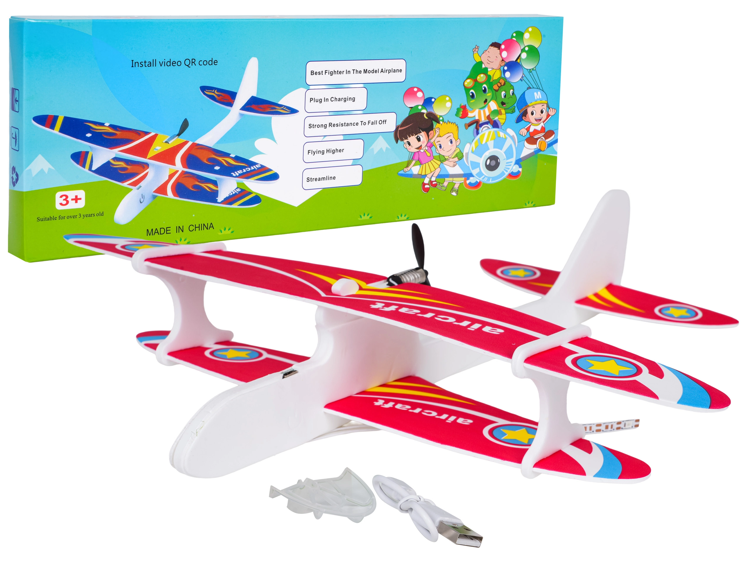 Het model is bedoeld voor kinderen vanaf 3 jaar en kan door iedereen worden gemonteerd – het is een vereenvoudigde bouwset met intuïtieve bediening: gooi het vliegtuigje uit de hand en kijk hoe het vloeiend in een cirkel vliegt. Opladen via USB en de geïntegreerde 3,7 V-accu maken het gebruik thuis en buiten eenvoudig.