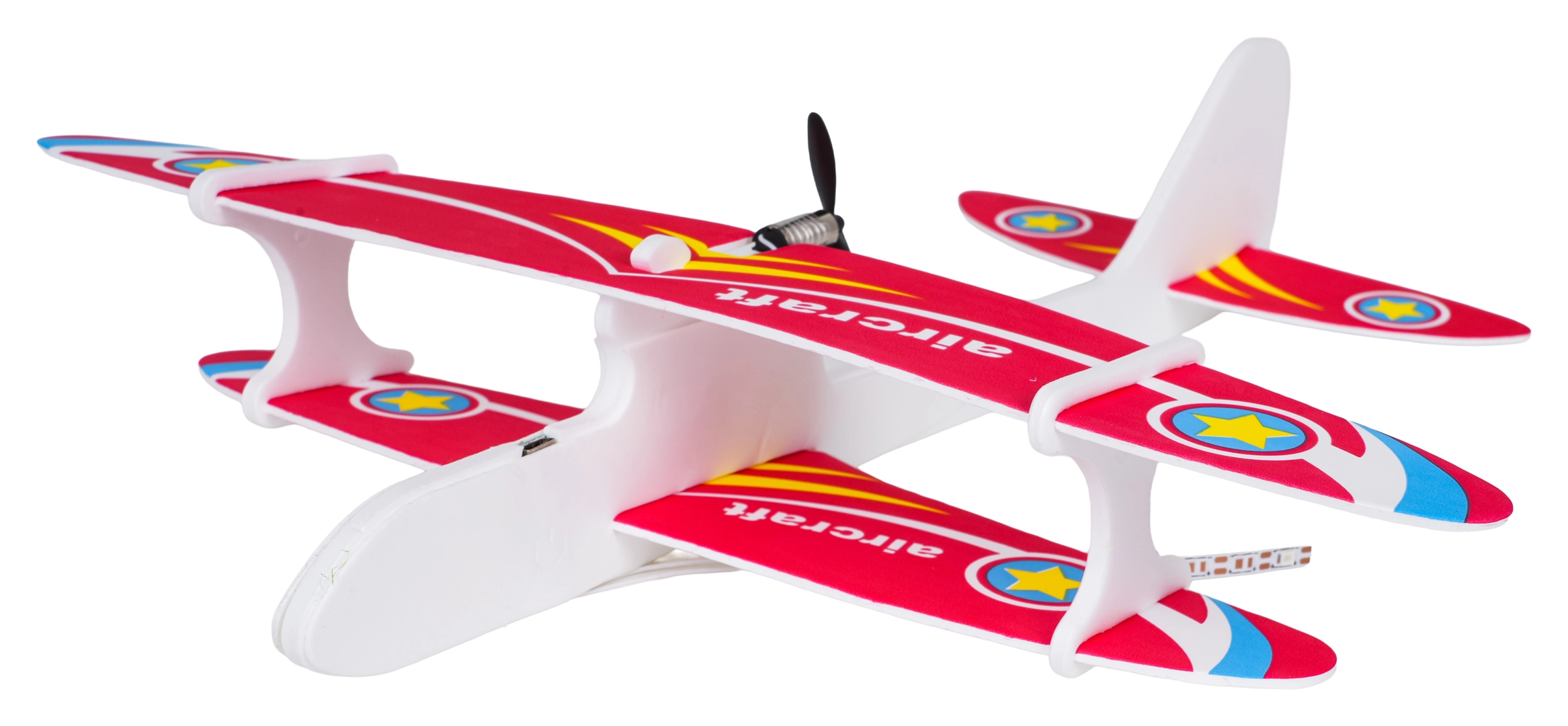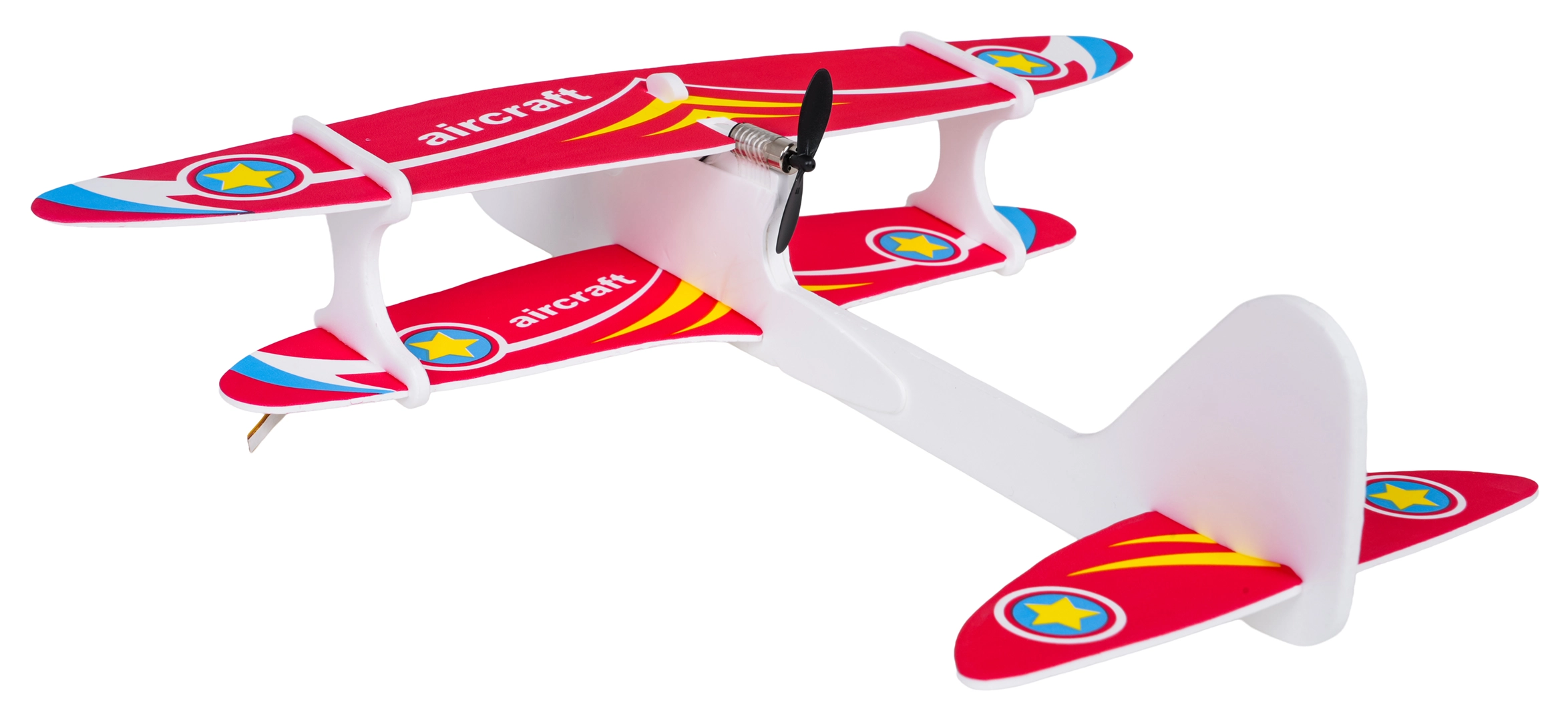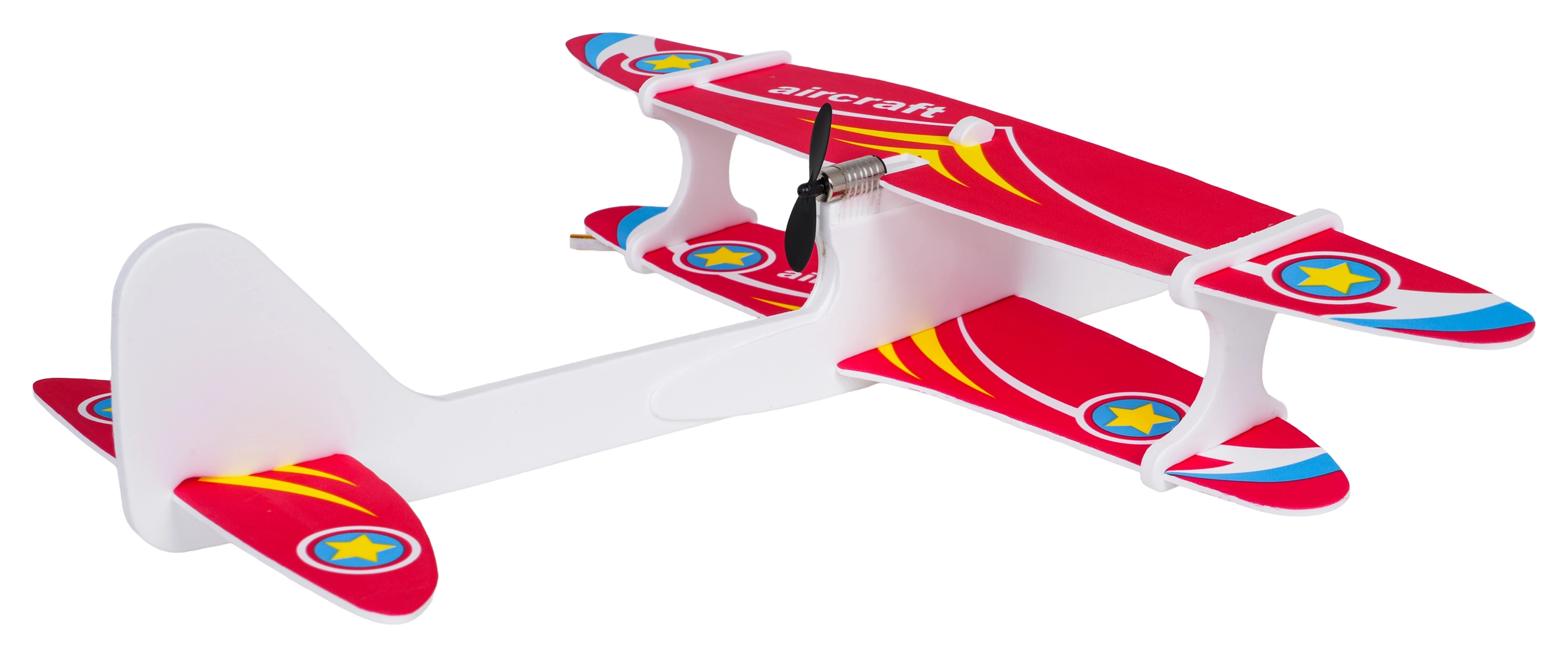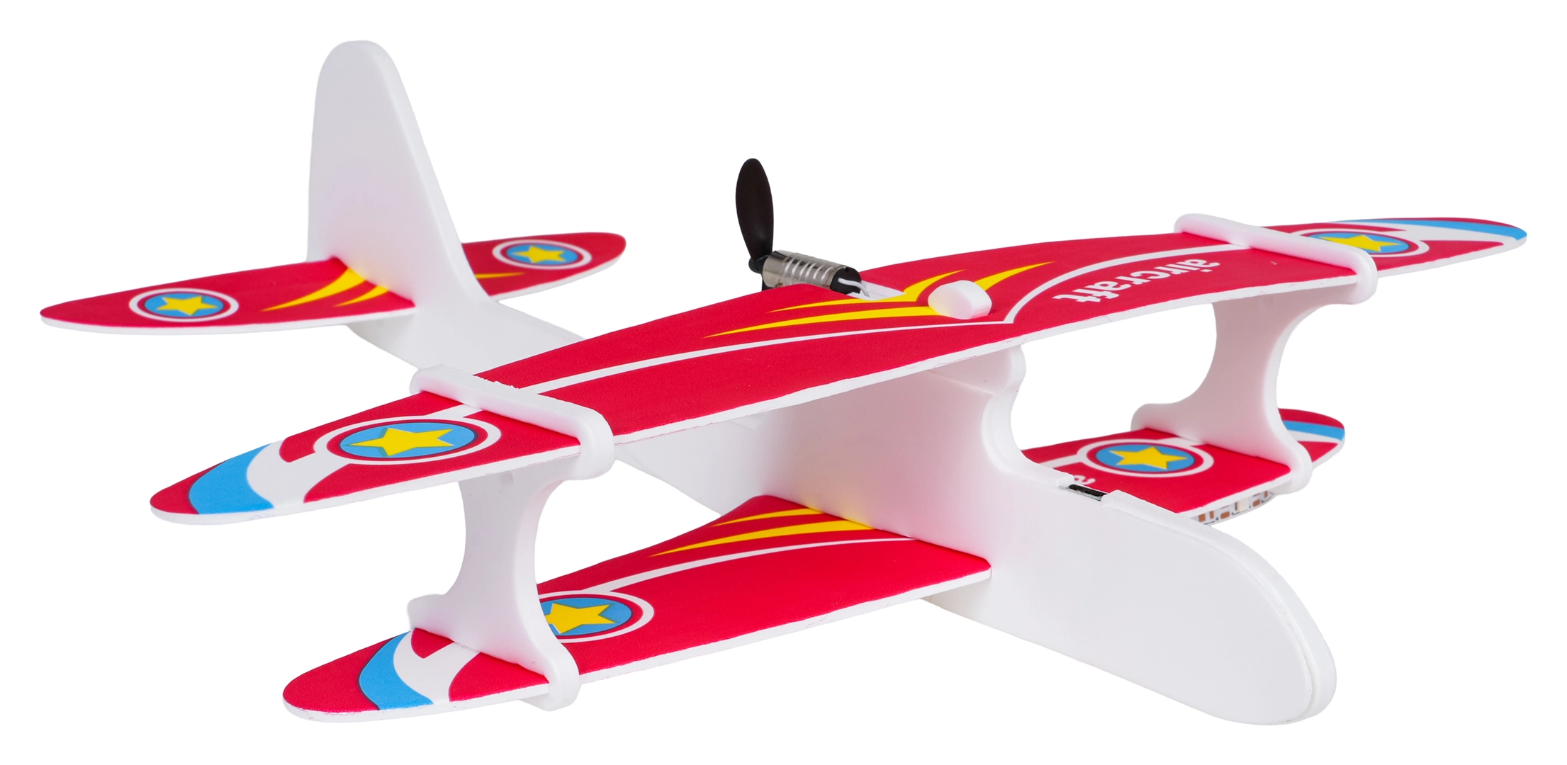 De constructie van duurzaam schuim combineert een laag gewicht met flexibiliteit. Daardoor start het vliegtuigje gemakkelijk uit de hand en vliegt het vloeiend in een cirkel, geschikt voor binnen en buiten.