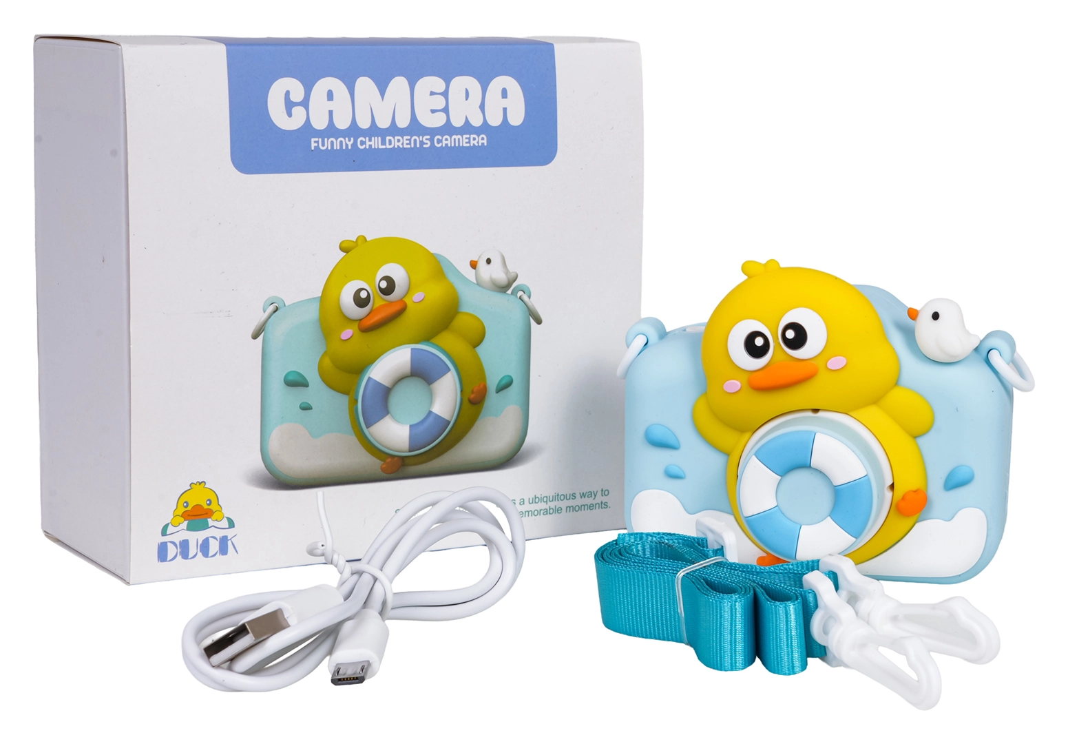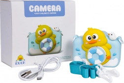 Een schattige kindercamera met eendenmotief brengt kinderen plezier en creativiteit. Hij kan foto’s en video’s maken, heeft een 1080p camera, een kleuren LCD‑display, leuke filters en kaders en in het geheugen 5 spelletjes. Inclusief een beschermende rubberen hoes, een nekkoord en een USB‑oplaadkabel. De ingebouwde batterij van 5 V / 1000 mAh zorgt voor talloze momenten vol foto’s en video’s.