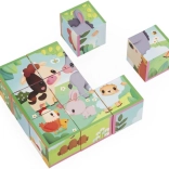 Deze klassieke set blokpuzzels met boerderijmotieven brengt kinderen plezier in ontdekken en leren. Van 9 hoogwaardige houten blokken maak je eenvoudig 6 verschillende afbeeldingen met dieren. Kinderen oefenen met bouwen, sorteren en ruimtelijke oriëntatie terwijl ze spelen.