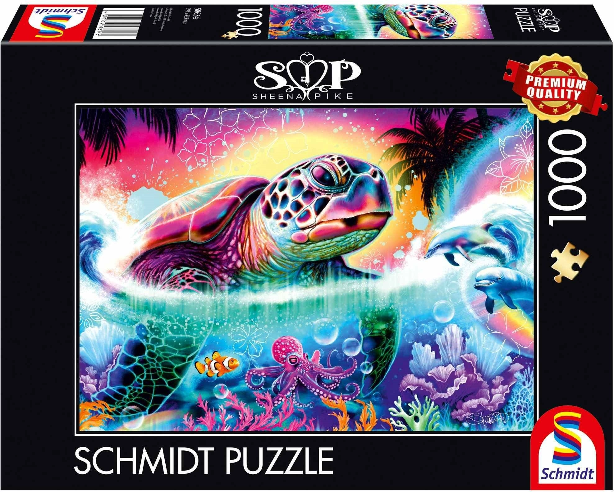 Geniet van ontspanning én uitdaging met de kwalitatieve puzzels van SCHMIDT. Het motief van de neon schildpad met 1000 stukjes valt op door diepe kleuren en gedetailleerde afwerking voor een perfecte legervaring. De voltooide puzzel heeft een afmeting van ca. 69,3 × 49,3 cm.