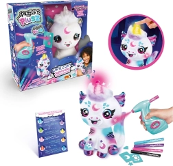 Het creatieve deel wordt verzorgd door een airbrush, 4 kleurstiften en 120 sjablonen, waarmee kinderen een uniek design kunnen maken. Na het versieren kan de knuffel gemakkelijk gewassen en opnieuw gedecoreerd worden – onbeperkt creëren en steeds een nieuwe look.