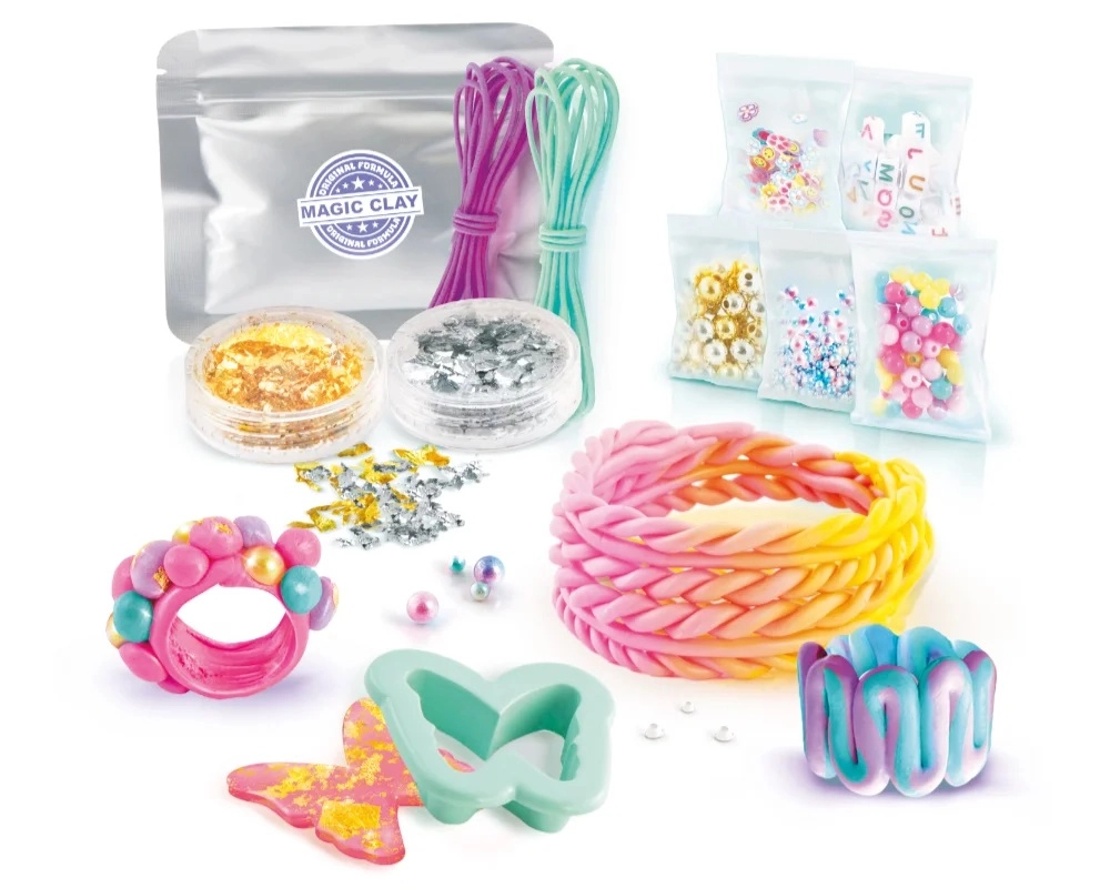 Breid je creatieve atelier uit met de Project Glam – Pracownia Biżu uitbreidingsset. Met deze set kunnen kinderen vanaf 6 jaar unieke ringen, armbanden en hangers maken met behulp van boetseerklei, mallen en versieringen. Biedt metallic effecten, kleurverlopen en een marmerpatroon voor originele resultaten.