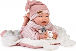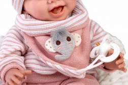 Armen en benen zijn aan gewrichten bevestigd – de pop kan zitten en eenvoudig van houding veranderen. Het zachte stoffen lichaam is knuffelig en comfortabel voor langere speeltijd.