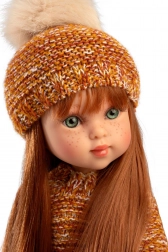 Deze realistische pop valt op door de gedetailleerde afwerking, het zachte gezicht en de lange haren die over het hele hoofd “geplant” zijn en uitstekend te kammen en te stylen zijn. Dankzij de scharnieren in armen en benen is de pop poseerbaar – ze kan met steun staan en comfortabel zitten, perfect voor creatief en rollenspel.