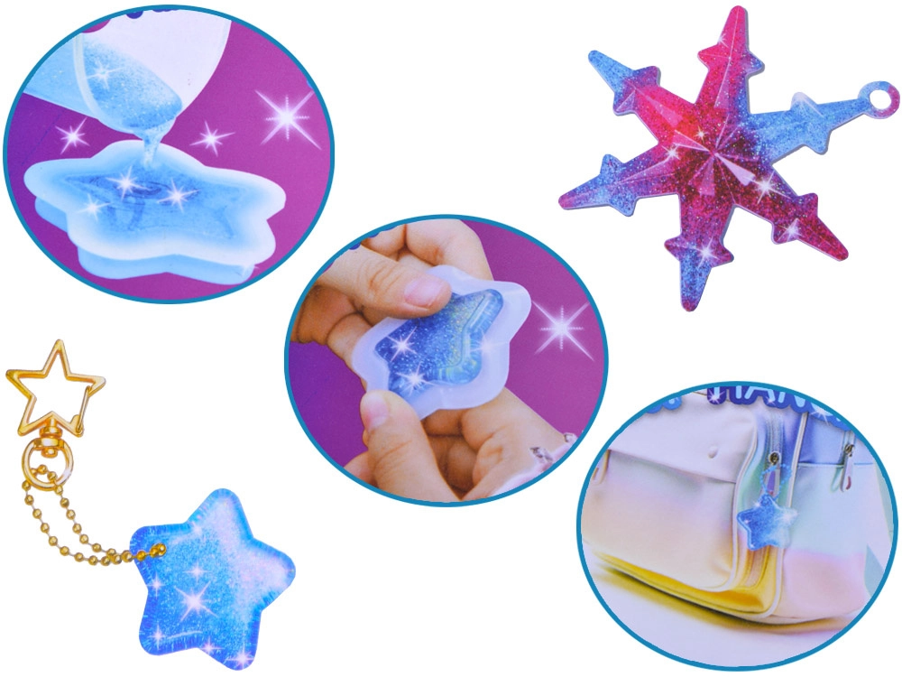 De set is perfect voor het maken van originele sleutelhangers, sieraden en cadeaus. Werken met hars is leuk, ontspannend en de resultaten zien er professioneel uit – ook zonder eerdere ervaring. Voor het beste resultaat ongeveer 24 uur laten uitharden op een vlak oppervlak.