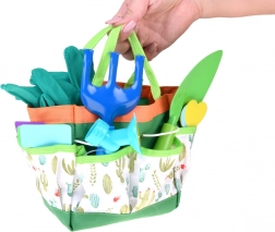 Een complete kinder-tuinierset met een vrolijk cactusmotief die kinderen inspireert om te leren en te spelen in de frisse lucht. Bevat een praktische tas–organizer met vakken, kleurrijk gereedschap voor kleine handjes, een gieter, schort, handschoenen, beschermers en kleurrijke plantenlabels. Ideaal voor graven, losmaken, verpotten en water geven en voor het opbouwen van een band met de natuur.