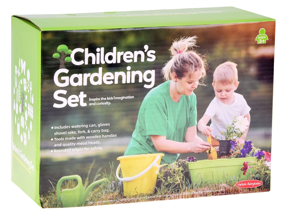 Duurzame en lichte tools met kleurrijke handgrepen zijn afgestemd op kinderhanden en ondersteunen de ontwikkeling van de fijne motoriek. Kinderen leren spelenderwijs de basis van plantenverzorging, oefenen geduld en verantwoordelijkheid en zien hoe hun werk resultaat oplevert.