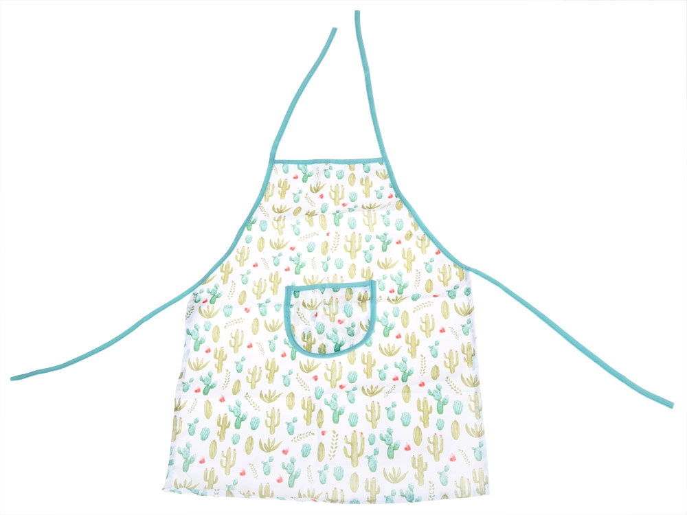 Het schort met zak, comfortabele handschoenen en beschermkappen beschermen kleding en handen tijdens knutselen en tuinieren. Het stijlvolle cactuspatroon zal kinderen enthousiasmeren.