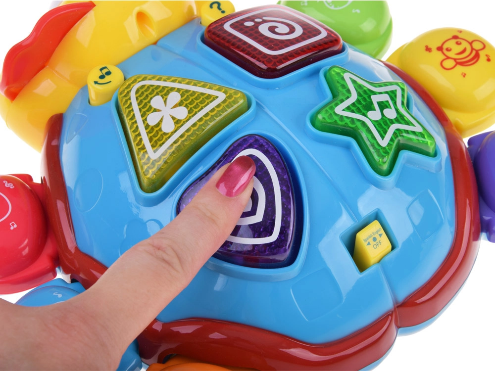 Kleurrijk interactief kevertje motiveert kinderen om te kruipen en te klimmen, speelt vrolijke melodieën, knippert met lichtjes en verandert dankzij de slimme obstakelsensor van richting. Met de grote knopjes leren kinderen kleuren, dieren en het principe van oorzaak–gevolg. De ideale speelgoedkeuze voor actieve pret en de ontwikkeling van de fijne motoriek.