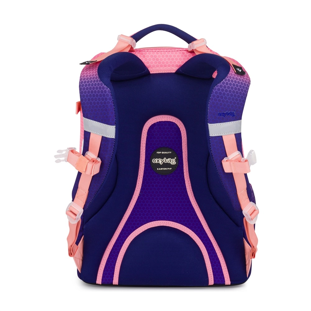 De OXY Ombre Apricot is een stijlvolle schoolrugzak met een vloeiende kleurverloop die meteen in het oog springt en tegelijk voldoet aan de eisen voor gezond en veilig dragen van schoolspullen. De anatomisch gevormde rugpartij, zacht gepolsterde schouderbanden en de verstelbare borstriem verdelen de belasting en ondersteunen een correcte lichaamshouding.