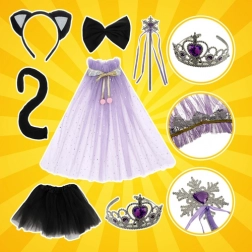 Schattig kattenkostuum voor meisjes van het merk KRUZZEL in een universele maat voor kinderen van 3–10 jaar. Bevat tot wel 7 accessoires voor een complete transformatie. Het kostuum is gemaakt van licht en duurzaam polyester dat en comfort bij het spelen biedt. Wasbaar op 30 °C, veilig materiaal en elegante zwarte kleur – ideaal voor carnaval, feestjes en verkleedpartijen.